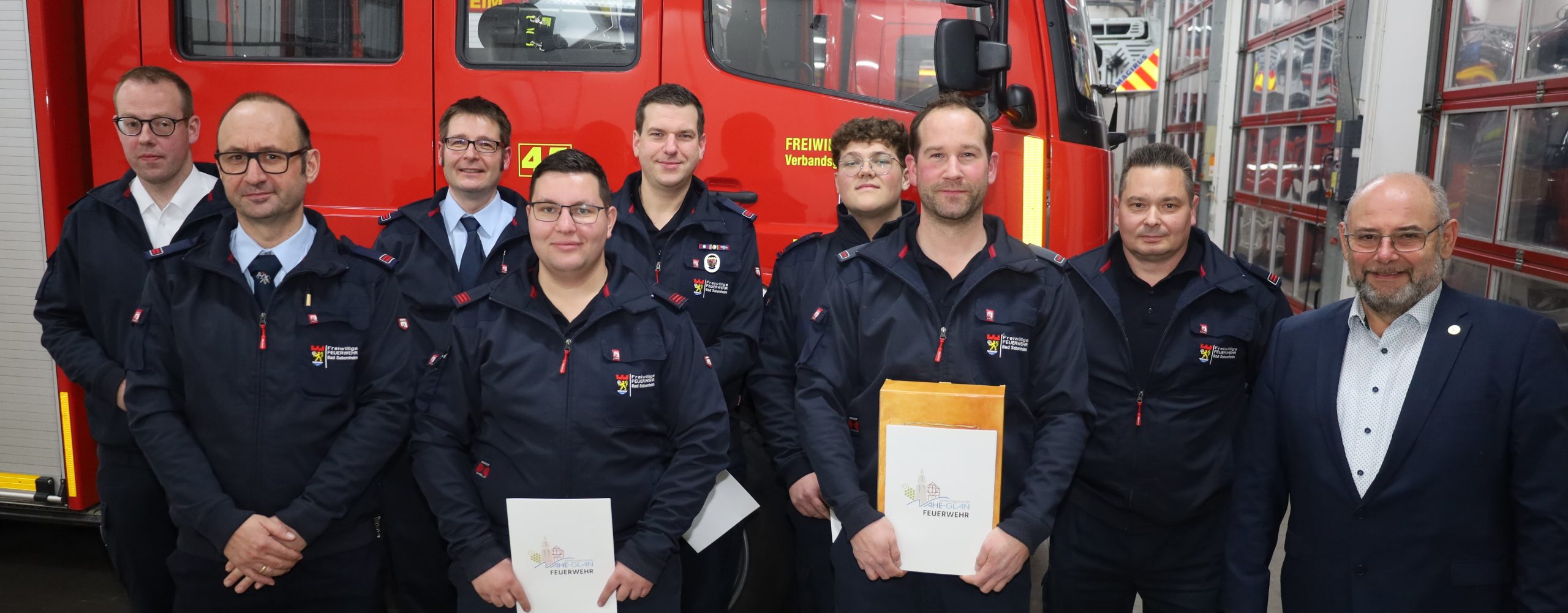 Foto oben: VG-Beigeordneter Thomas Langguth (rechts) und VG-Wehrleiter Max Kraushaar (links) ehrten, Beförderten, ernannten und veraschiedeten Johannes Zauner als Jugendwart. Bad Sobernheim.…