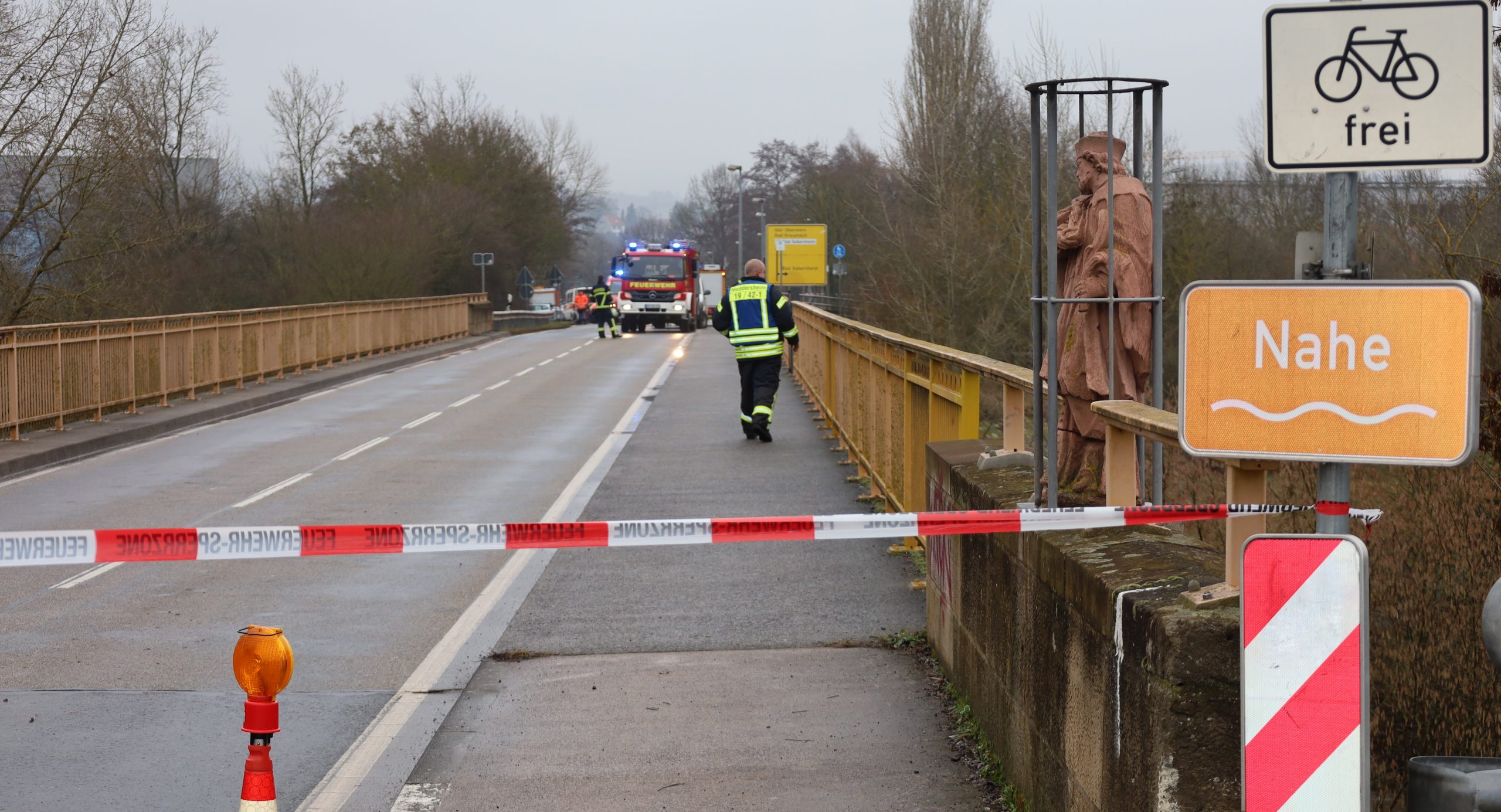 „Mann im Wasser“ L232 an Nahebrücke lange gesperrt. Großeinsatz der Rettungskräfte