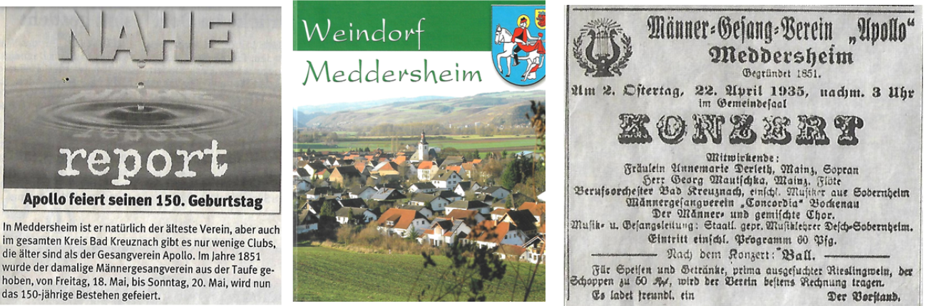 Meddersheim. 2026 könnte der Apollo-Chor Meddersheim 175-Jähriges feiern, zum 150. Geburtstag zollte Andreas Nitsch im „Öffentlichen“ am 17. Mai 2001 einen „NAHE-REPORT“…