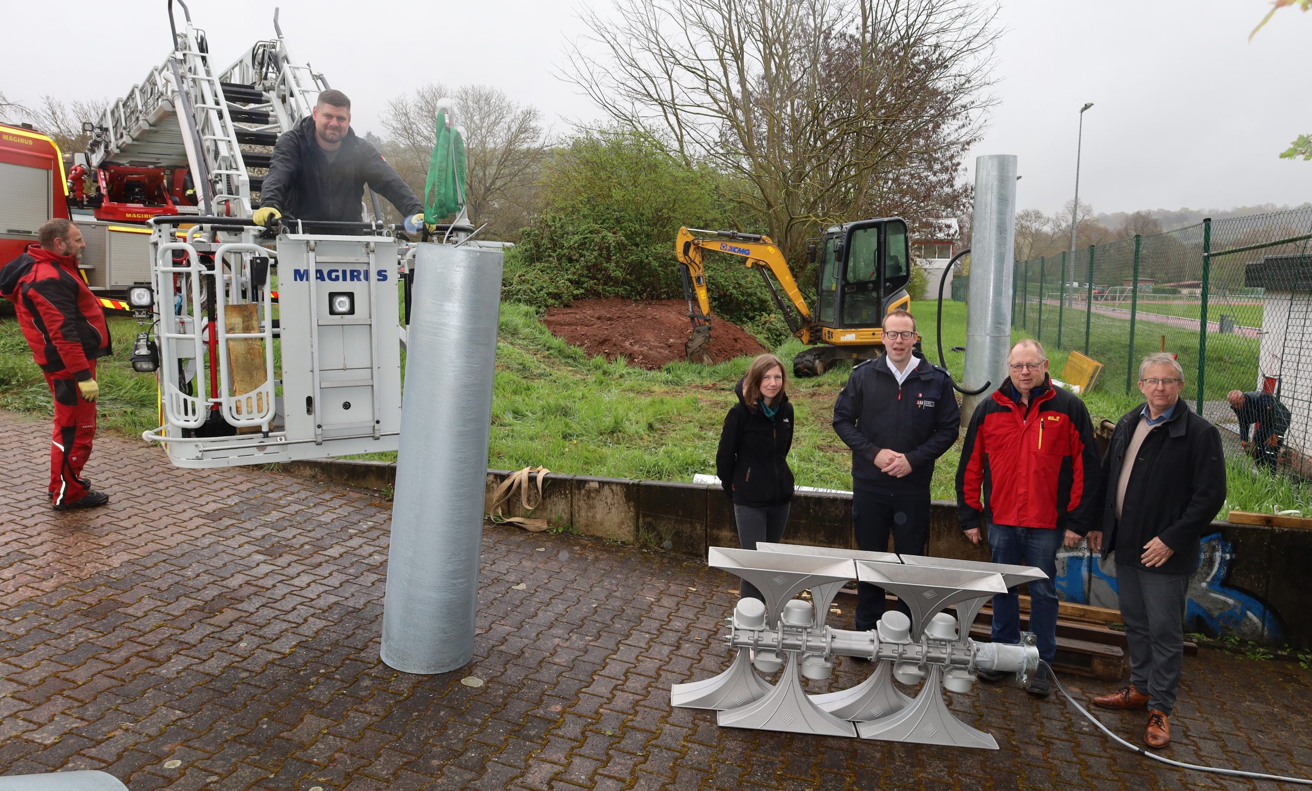 Foto oben: Janine Schwehm (von links), Wehrleiter Max Kraushaar, Lothar Treßel und VG-Chef Uwe Engelmann: Bad Sobernheim. Neben dem Funktionsgebäude am Staaren-Sportplatz…
