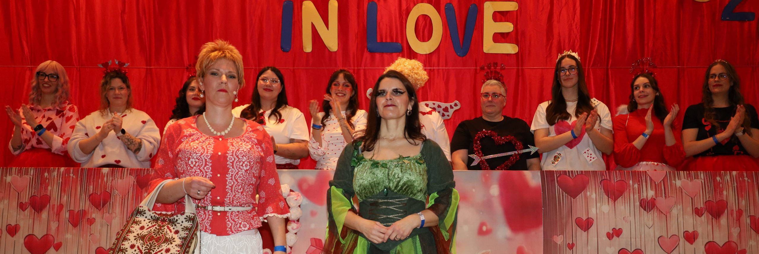 Foto oben: Annika Kreuzer & Anne Mengeu (rechts) als HeideWitzka und Schinderhannes-Eiche Bärenbach. Traditionell feiern die Vereine nach der Kinderkappensitzung am Abend mit viel Klamauk und Kokolores, Frohsinn und Heiterkeit ihre Prunksitzung im prächtig dekorierten Bürgerhaus am Lerchenkopf, bis das sehenswerte Dachlatte-Männerballett mit einer TV-reifen Inszenierung unter der Regie von Annika Kreuzer und Katharina Porger ein grandioses Finale einläuteten. In Anlehnung an den Valentinstag lautete das Motto und der Schlachtruf 2026, „ Bärenbach in Love“.
