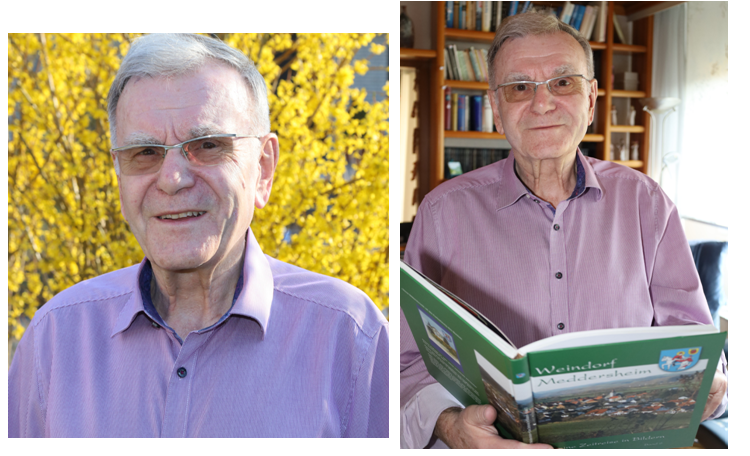 Jahrzehnte klebten die Meddersheimer Weinfestbesucher an seinen Lippen, einer sonoren, seriös-vertrauten „Weinfeststimme“.(Foto ganz oben mit Naheweinkönigin Pauline Baumberger aus Mandel, 2018).Wolfhart Dhonau war und ist als humoriger und charmanter Conférencier und profunder Konzertführer das i-Tüpfelchen unzähliger Musikaufführungen. In einer langen Laudatio ehrten Winzer, Vereine und Weinfestausschuss Wolfhart Dhonau, als er 2018 nach dem 40. Meddersheimer Weinfest kürzer trat. Er sei „als Institution ein Motor und Zaun ums Haus, der sich nie zu Schade war, Toilettenwagen zu inspizieren oder nach dem Fest den Müll wegzufahren“. Chapeau! Geburtsort und Wiege waren das Elternhaus in der felkestädtischen Ringstraße; – der Bub besuchte die Volksschule im heutigen Bürgerhaus, wo unterm Dachjuchee sein Klassenraum war und womöglich die Verleihung des 40. Kulturpreises an ihn stattfindet. So schließt sich der Kreis…
