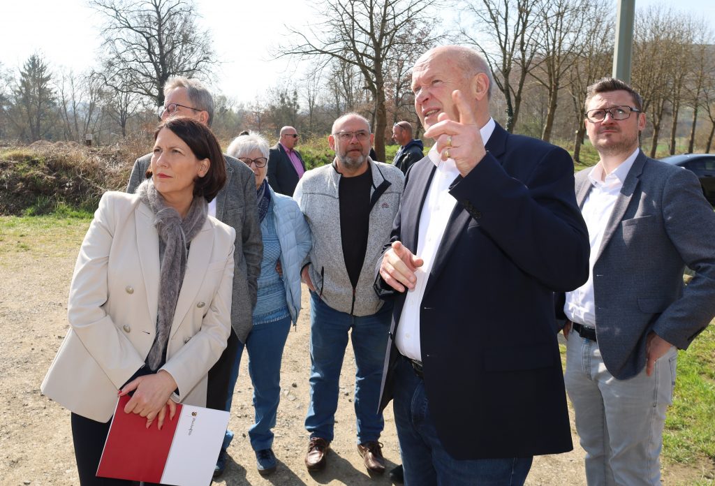 Den für die Mobilität dieser Art kurze Zeitraum für Planung, Baurecht und Umsetzung zeige, dass es vorangehen kann, wenn alle Beteiligten vom Bund bis in die Ortsgemeinde an einem Strang ziehen und den Ausbau des Glan-Blies Radweges wollen, dankte die Ministerin. Eine Beschleunigung auf Bundesebene habe man ins Landesrecht übernommen. Insofern dankten Schmitt und der Nahe-Glan VG-Bürgermeister Uwe Engelmann den beiden Ortsbürgermeistern Patrick Becker aus Rehborn und Achim Schick (Odernheim) sowie allen involvierten Anwesenden, dem VG-Bauamt, Technikern und der Verwaltung; – federführende Antragstellerin mit Nachdruck und Beharrlichkeit sei Renate Scheffold gewesen. 1,127 Millionen Euro werden aus dem Bundes-Sonderprogramm „Stadt & Land“ zu 90 Prozent gefördert, der symbolische Förderbescheid hatte einen Wert von 997.000 Euro.