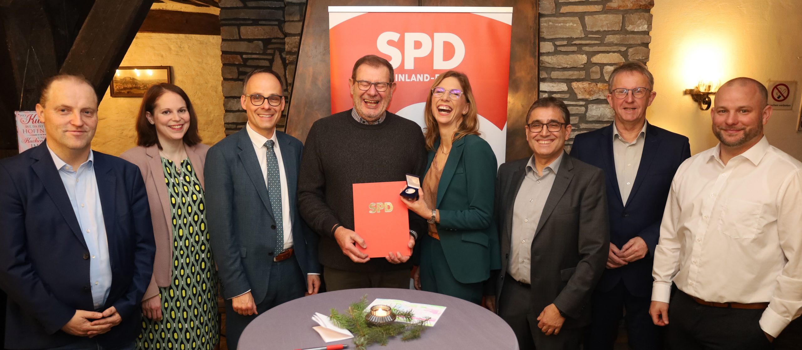 Merxheim. Während einer Feierstunde im vollbesetzten Merxheimer Rathaus wurde Alt-Ob Egon Eckhardt (Mitte) mit der Willy Brandt Gedenkmedaille geehrt. Es ist die…