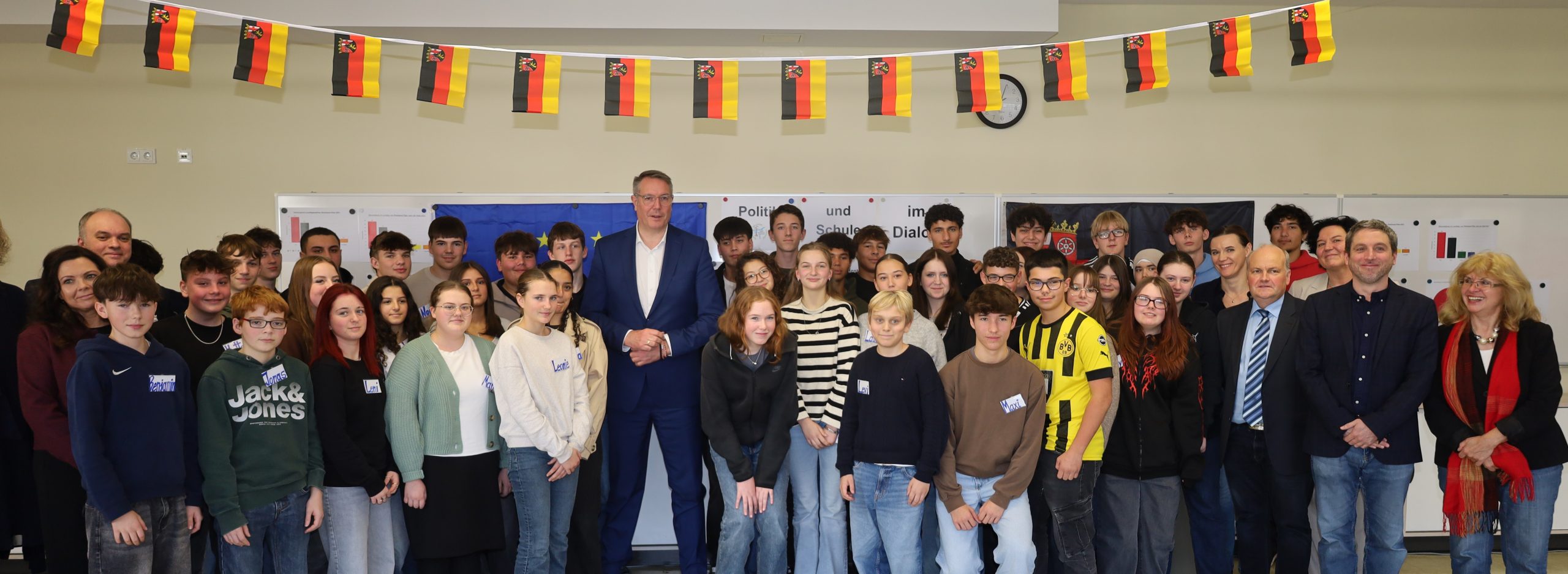 Bad Sobernheim. Warum ist die Politik der alten Herren in Anzügen so unattraktiv? Und was bereitet ihnen aktuell die größten Sorgen? Große Ehre für die Schüler der Klassenstufen 8 bis 10 an der kooperativen Disibod-Realschule plus in Münchwiesen: Mit dem Kollegium erarbeiteten die Schüler in vier Themenblöcken 20 Fragen, mit denen sie in einer Diskussionsrunde Ministerpräsident Alexander Schweitzer „löcherten“; – er ist laut Verfassung Oberhaupt der Landesregierung und bestimmt die Richtlinien der Politik.