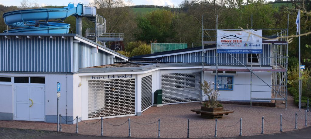 Bei einer Stippvisite zur Saisonvorbereitung mit dem Ersten Beigeordneten der VG Nahe-Glan, Ron Budschat, herrschte eitel Sonnenschein und ein strahlend blauer Himmel; – ein gutes Omen. Bekanntlich ist dies die beste Werbung. Die beiden „neuen“ Betriebsführer in Bad Sobernheim, Andreas Barth, und in Meisenheim Stefan Nerbas sind quasi „alte Hasen“, Fachpersonal, die das Metier aus dem Effeff kennen. Derzeit ist das Technikgebäude im Frei- und Erlebnisbad „Am Rosenberg“ eingerüstet; – hier wird das Dach erneuert und mit einer PV-Anlage ausgerüstet, um gerade in den von der Sonne verwöhnten Sommermonaten Energieautark zu werden und Kosten einzusparen. Eine neue elektronische Schließanlage ist montiert.