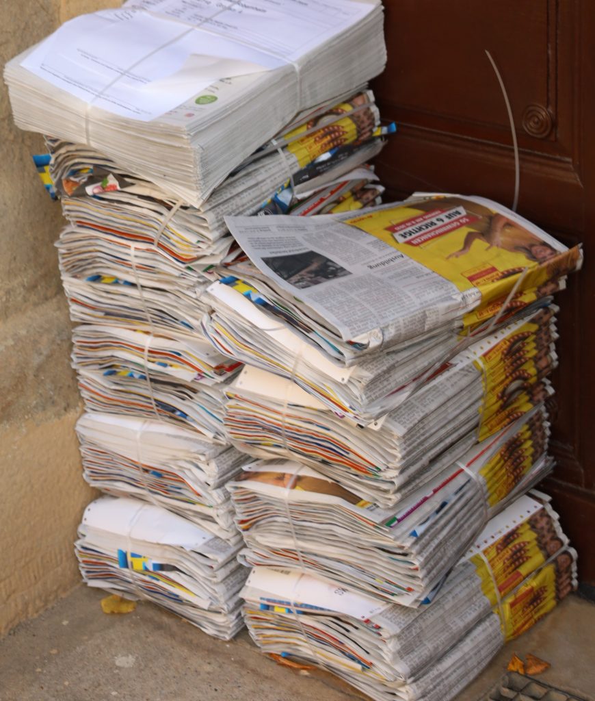 Leider stapeln sich immer öfter und überall die Werbeblättchen und werden oft auf Zuruf verteilt. „Früher“ war „das Dreieck“, B41/Abfahrt Kirn, 20 Meter von der heutigen Arzpraxis in Hochstetten-Dhaun, ein Epizentrum nicht ausgetragener Blättchen. Das ist dann doppeltunddreifach unseriös, rausgeschmissenes Geld, nonsens, weil, die Annonce wurde umsonst bezahlt; – der Austrägerlohn vermutlich abkassiert, die Arbeit aber nicht fristgerecht erledigt, wie desöfteren in DorfApps über fehlende Werbeblättchen nachzulesen ist. Mir tun alle leid, die umsonst im Wochenspiegel oder wo auch immer inseriert haben und es liest dann kein Mensch….!