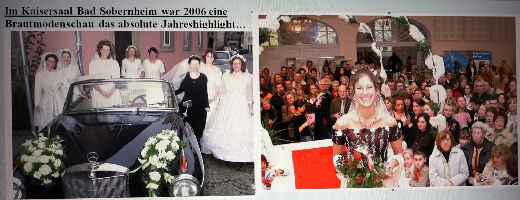 2006 waren im Bad Sobernheimer Kaisersaal bei einer großartigen Hochzeitsmesse samt Accessoires und Festtagsmode strahlende Models und Dressman Eyecatcher auf den Laufsteg, wie eine Bildcollage zeigt –