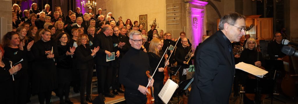 Bad Sobernheim. „Unter dem Kreuz“ – die Konzertaufführung Stabat Mater des 1944 geborenen Sir Karl W.P. Jenkins avancierte als ein epochales Werk in der proppenvollen Matthiaskirche am Gründonnerstag zu einem außergewöhnlich- grandiosen und gesellschaftlichen Ereignis weit über Kreisgrenzen hinaus. Stabat Mater ist ein multikulturell-christliches Highlight in 12 Teilen und wurde zur Todesstunde des gekreuzigten Jesu, nachmittags um 3 Uhr am Karfreitag, in der Johanneskirche in Idar-Oberstein und am Abend in der Abteikirche in Offenbach-Hundheim vor vollbesetzten Reihen aufgeführt: „Ein Kraftakt ohnegleichen – aber vollbesetzte Reihen beflügeln“, freute sich Pfarrerin Ulrike Scholtheis-Wenzel.