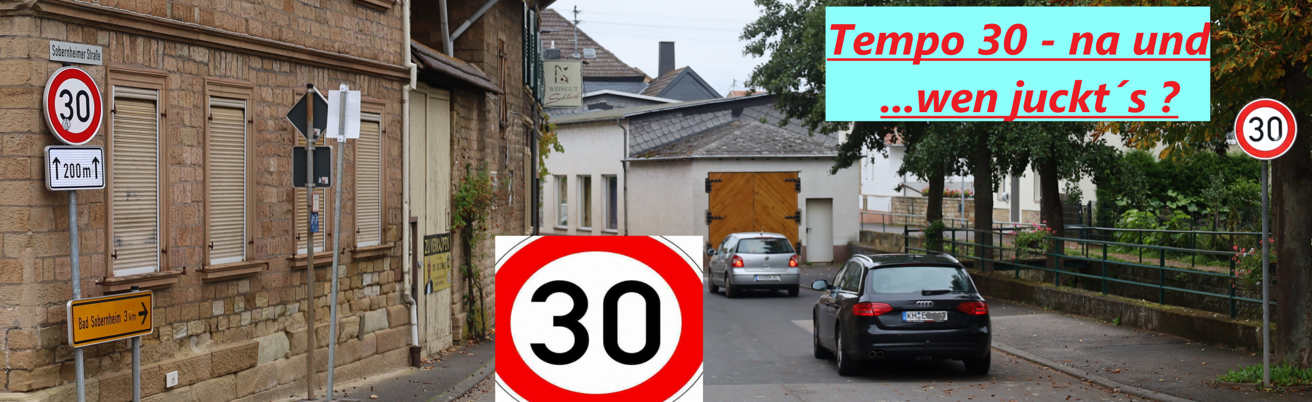 …und ist in aller Munde! In der DorfApp „Meddersheimer Gebabbel“ konnte man im Oktober 40 Kommentare bis unter die moralische Gürtellinie von Für und Wider lesen. Vor „Blitzern“ in der Naheweinstraße und an der (Schüler-) Bushaltestelle am „Dicken Stein“ wurde in Apps gewarnt. Vor so viel Unvernunft musste sich auch der Ortschef Bernd Schumacher im Gemeinderat bremsen und an sich halten. In Meddersheim sieht man auf den ersten 200 Metern der Naheweinstraße an der östlichen Winzergenossenschaft bis Abzweig Meisenheim/Hintergasse sieben, 7! Verkehrszeichen VZ 274-30. Wohlgemerkt 7, alle 30 Meter in einer Fahrtrichtung. Hammer! In der Bad Sobernheimer Kernstadt gibt es vier Empfehlungen, 20, 30, 40 und 50 km/h. Und in Monzingen haben die Fraktionen SPD und FWG Anträge auf Tempo30 Innerorts auf der K19 und L229 gestellt: „Was überall Gang und gäbe ist, sollte auch in Monzingen möglich sein!“. Da schwang ganz viel Frust und Hilflosigkeit mit. Aber nützen Schilder etwas, fahren dann die Autos langsamer? Wer hat Tempo30 auf dem Schirm? Bei pro und kontra Argumente ist die gesellschaftliche Diskussion hanebüchen. Aber wer bitteschön ist „die Gesellschaft“?, das Er/Sie einen Schilderwald auf Kosten der Allgemeinheit braucht? Und: wer in dem Bereich geblitzt wird, wenn weit und breit nichts zu sehen ist, sei „eine arme Sau“, bedauern selbst Lieschen Müller und Otto Normalo.